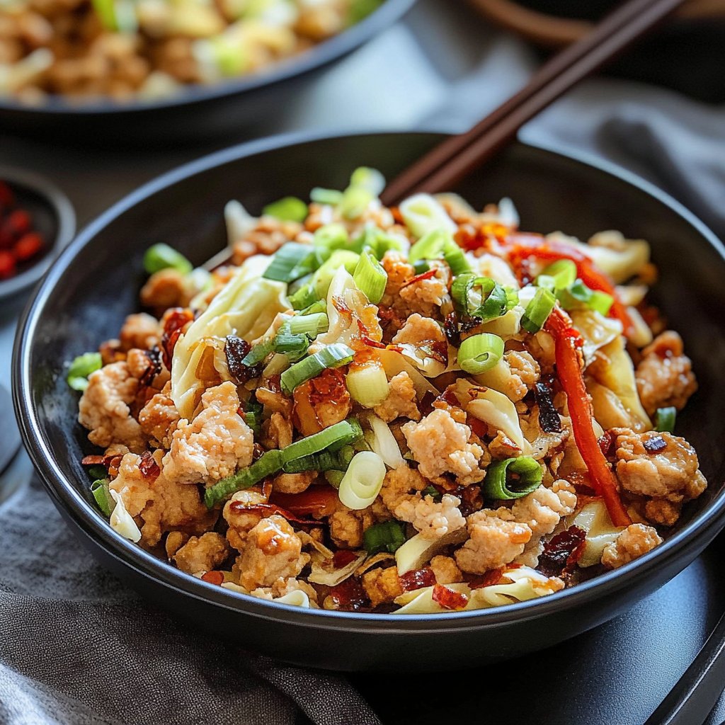 To prepare Easy Egg Roll in a Bowl, start by browning ground meat such as pork or chicken in a skillet. Once cooked, add shredded cabbage and carrots to the pan. Stir in garlic and ginger for added flavor. Finally, pour over soy sauce or tamari, and cook until the vegetables soften. one skillet chicken and gnocchi Serve hot, garnished with green onions and sesame seeds if desired. This simple recipe allows you to whip up a nutritious meal quickly. For more inspiration, check out this Chicken Mozzarella Pasta recipe recipe.